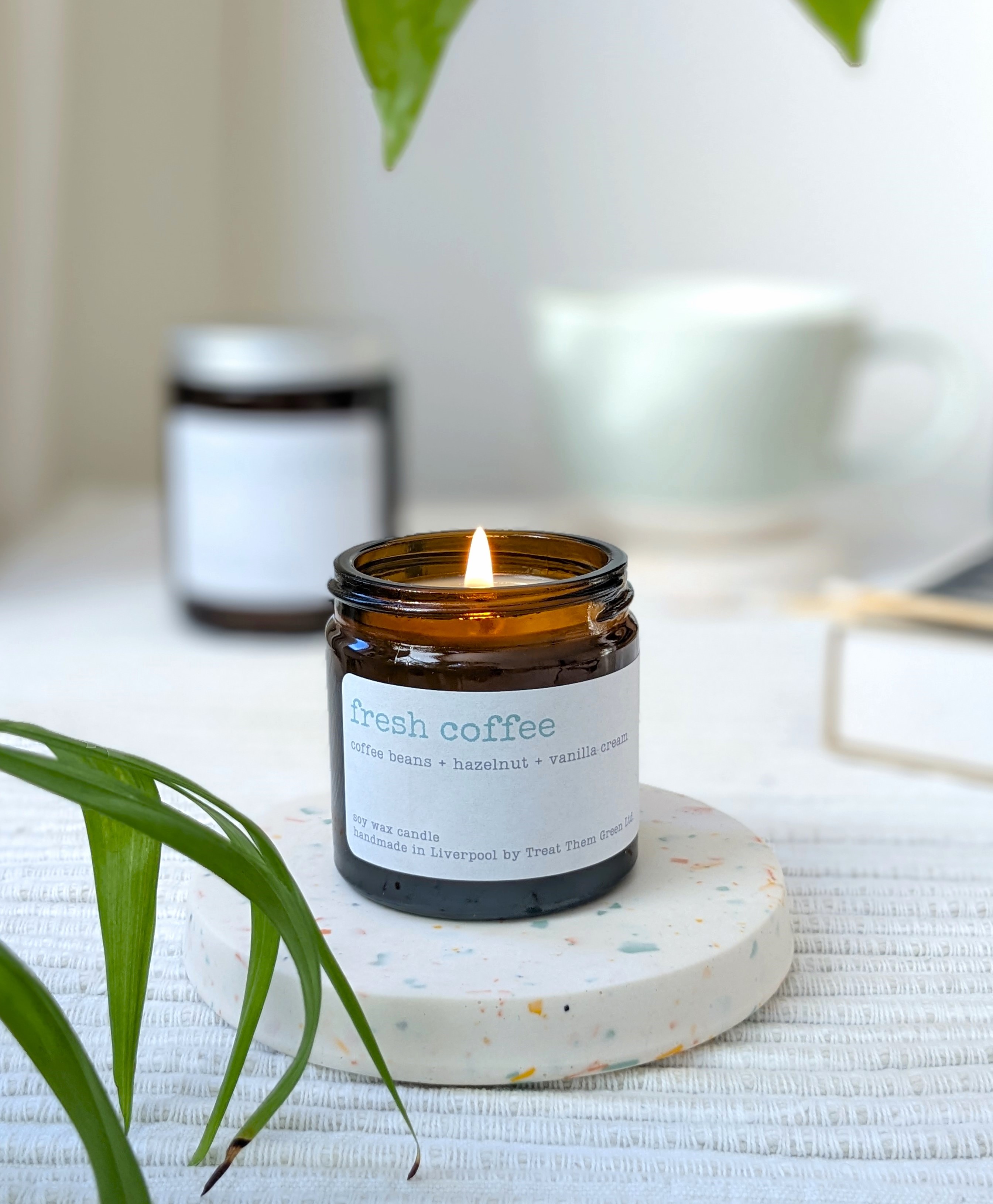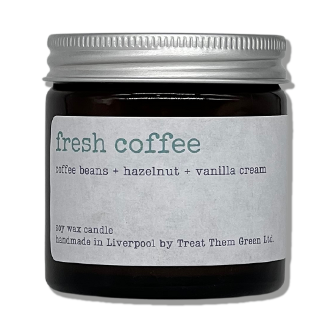 Fresh Coffee scented mini soy wax candle from our friends at Treat Them Green.