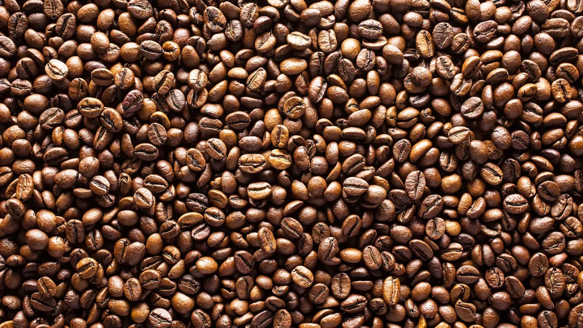 When roasted, coffee beans go from a bright green colours to dark brown. The longer they’re roasted, the darker they’ll be.